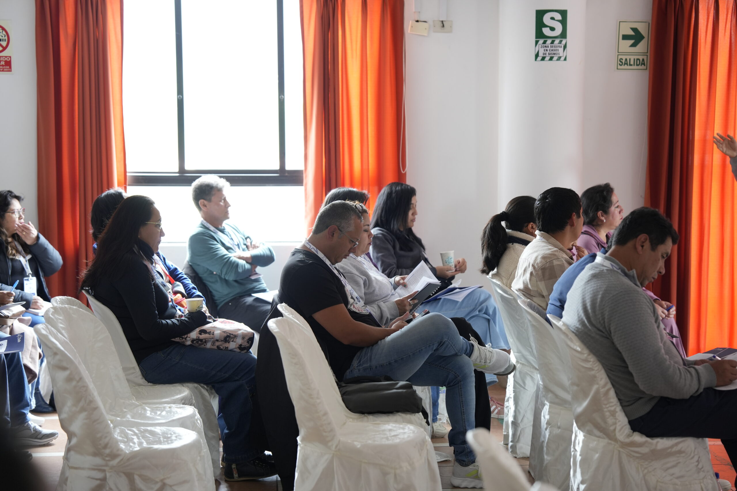 Durante los dos días siguientes, el trabajo fue acompañado por el H. Emilio Prada, responsable del Consejo AMEL en Perú, y la Prof. Jessica Ortega, secretaria ejecutiva del mismo consejo. En estas sesiones se llevó a cabo el estudio y la revisión del Proyecto Educativo Distrital, actualmente en elaboración. Este proceso es de especial relevancia, pues se trata de un documento orientador para la labor educativa lasallista en el Distrito; por ello, resulta fundamental recoger la mirada de quienes viven la misión cada día en las obras, en contacto directo con estudiantes, familias y equipos docentes. Asimismo, se contó con la participación del H. Richard Félix, quien, en nombre de la Comisión de Pastoral, presentó los lineamientos que orientarán el trabajo de esta importante área.