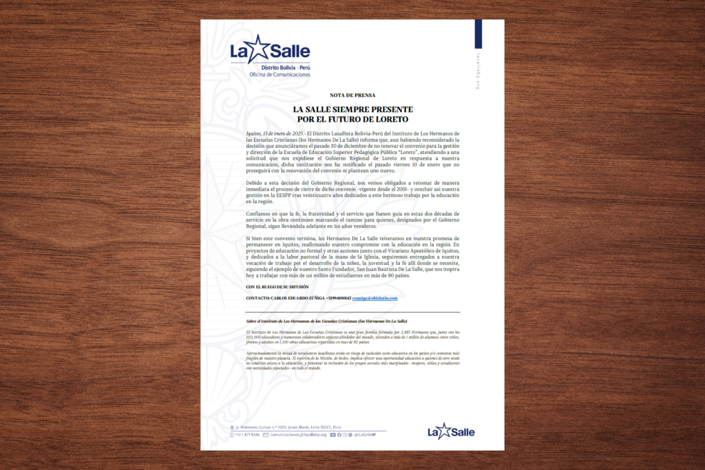 La Salle siempre presente por el futuro de Loreto (Nota de Prensa)